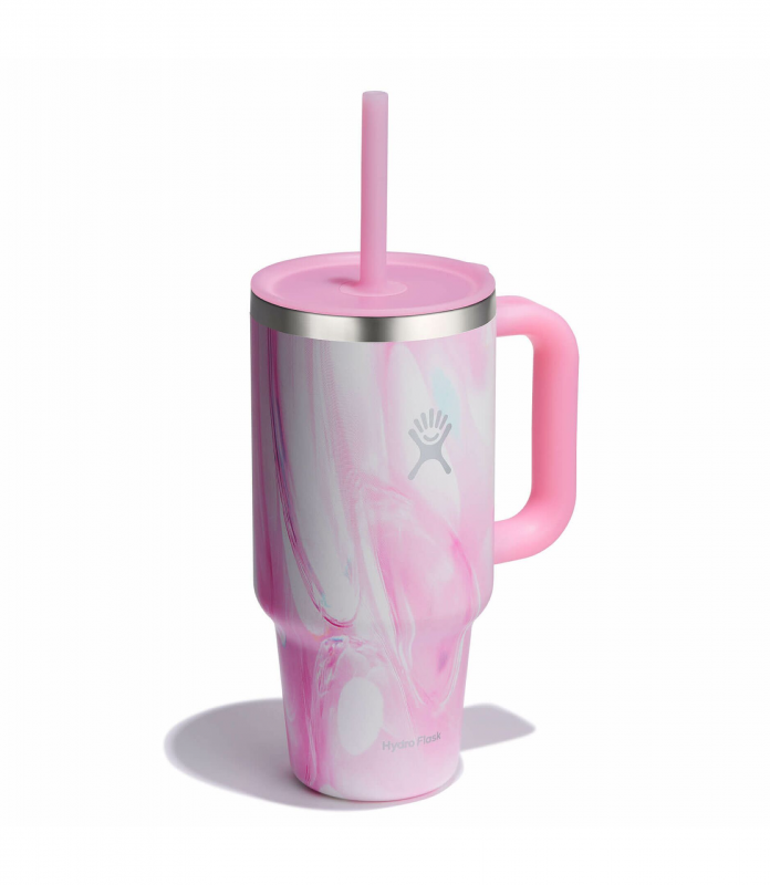 The insulated Hydro Flask 32 oz Travel Tumbler cup is here to hydrate more and refill less. The insulation keeps drinks cold for hours, and the durable handle makes it easy to take along anywhere. The 32 oz size stainless steel tumbler bottle can go anywhere, even fitting most cupholders. Cold stays cold, and the flexible straw is easy to sip any which way.