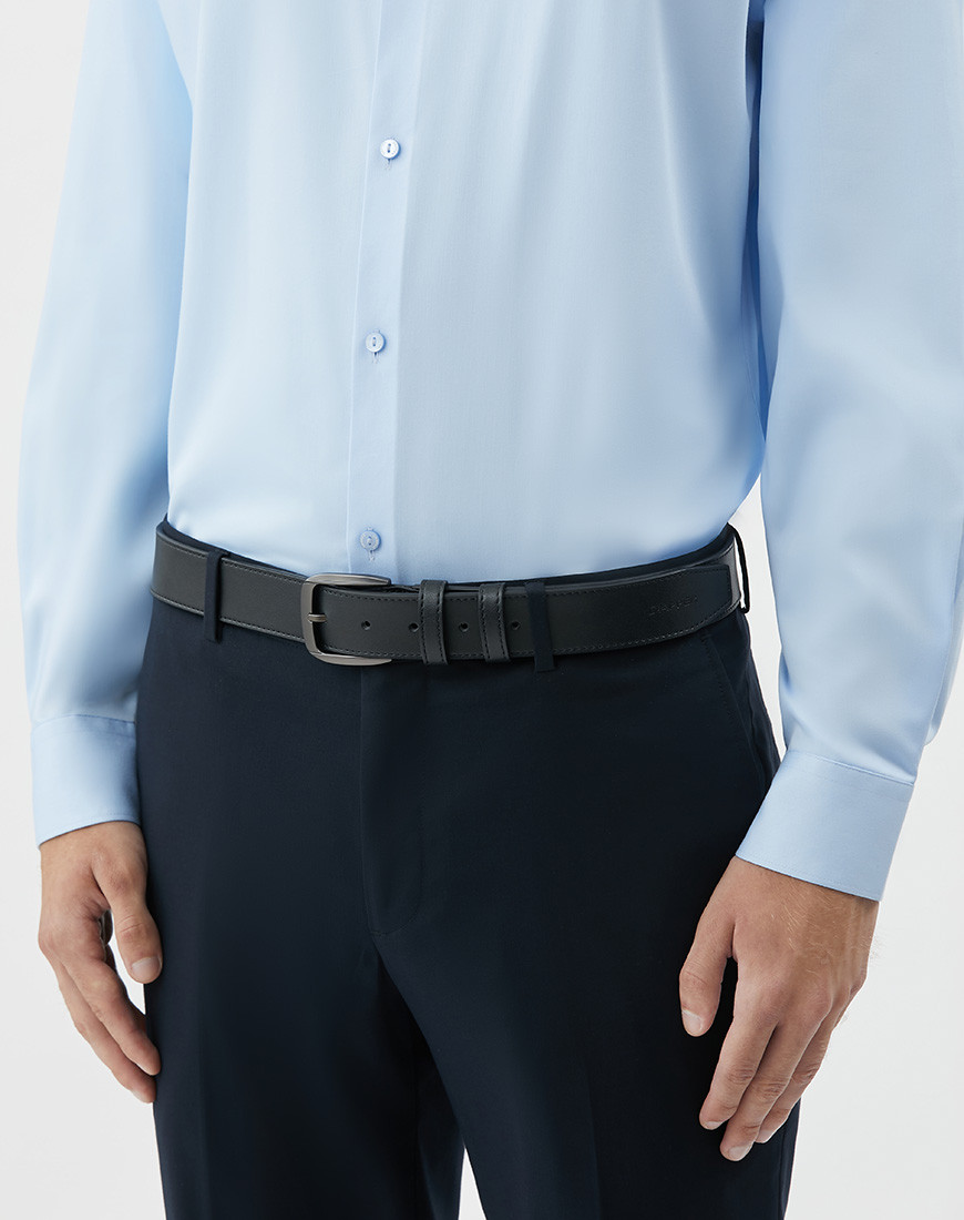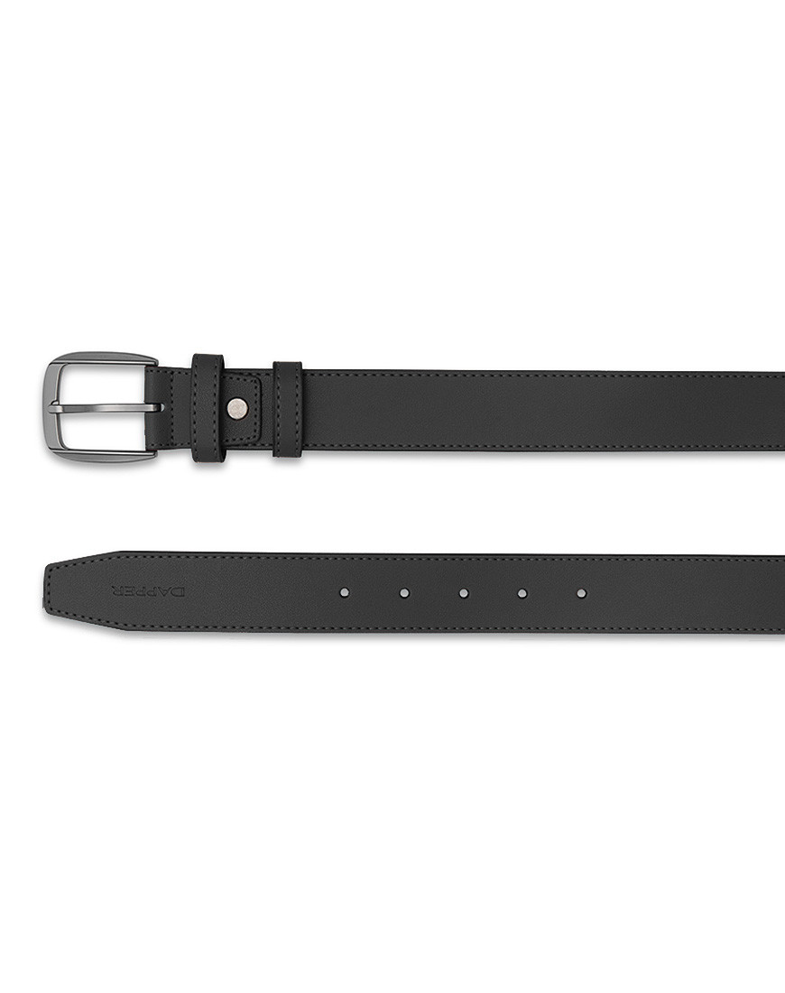 Pin Buckle Vegan Leather belt made of Smooth black vegan leather work with tailoring occasion. Buckle made of Lightweight Zinc Alloy in Modern classic shape, Matte Gun metal finishing Leather strap can be cut to fit with Dapper logo debossed at the end of strap. Timeless & Versatile