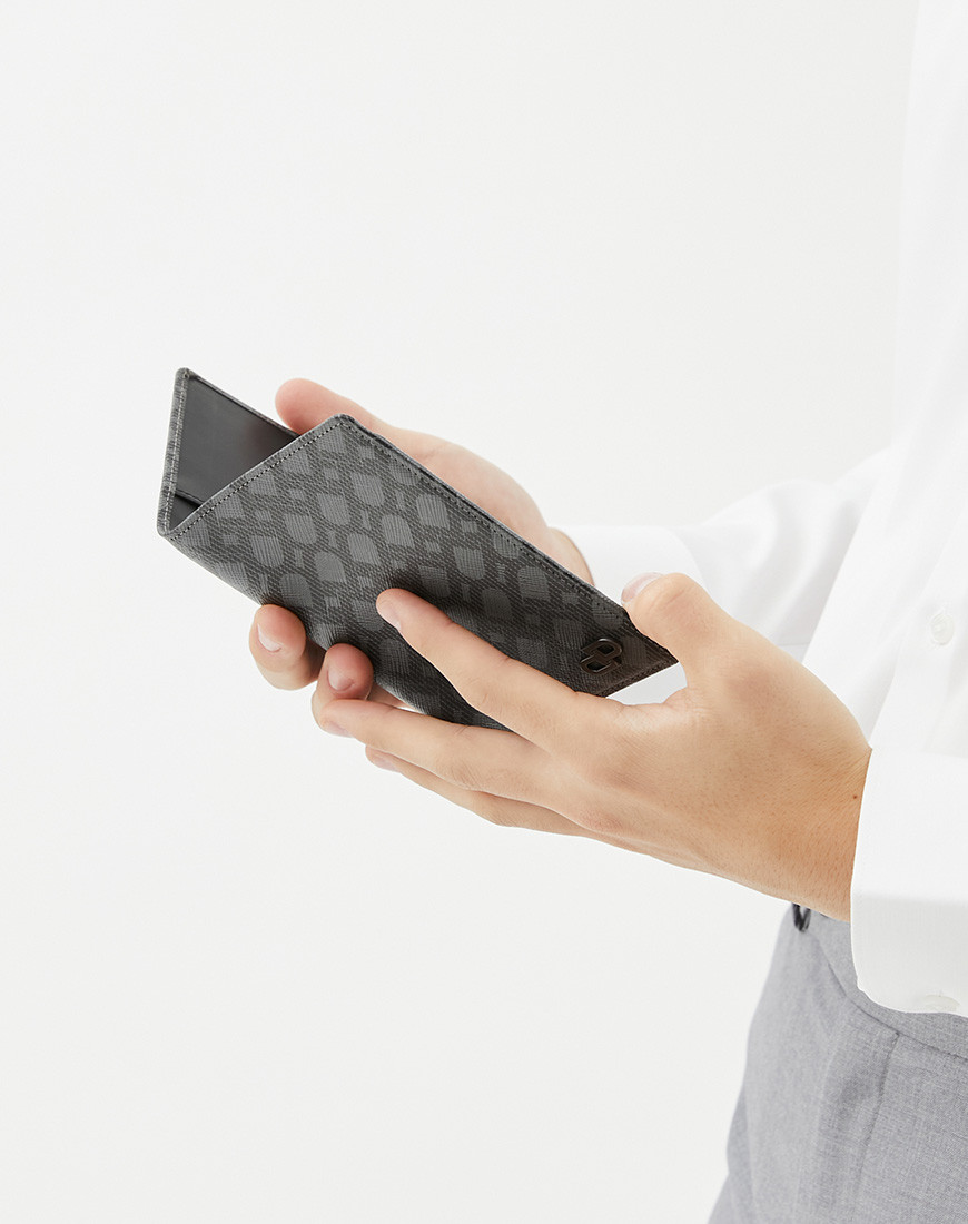 DP Interlock Monogram Passport holder is an elevated way to organise your travel essentials. It’s made from Grey & black monogram printed leather & black nappa Leather interior with plenty of card slots and a place to keep your identification.