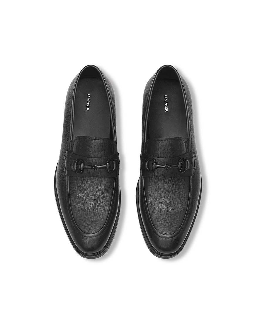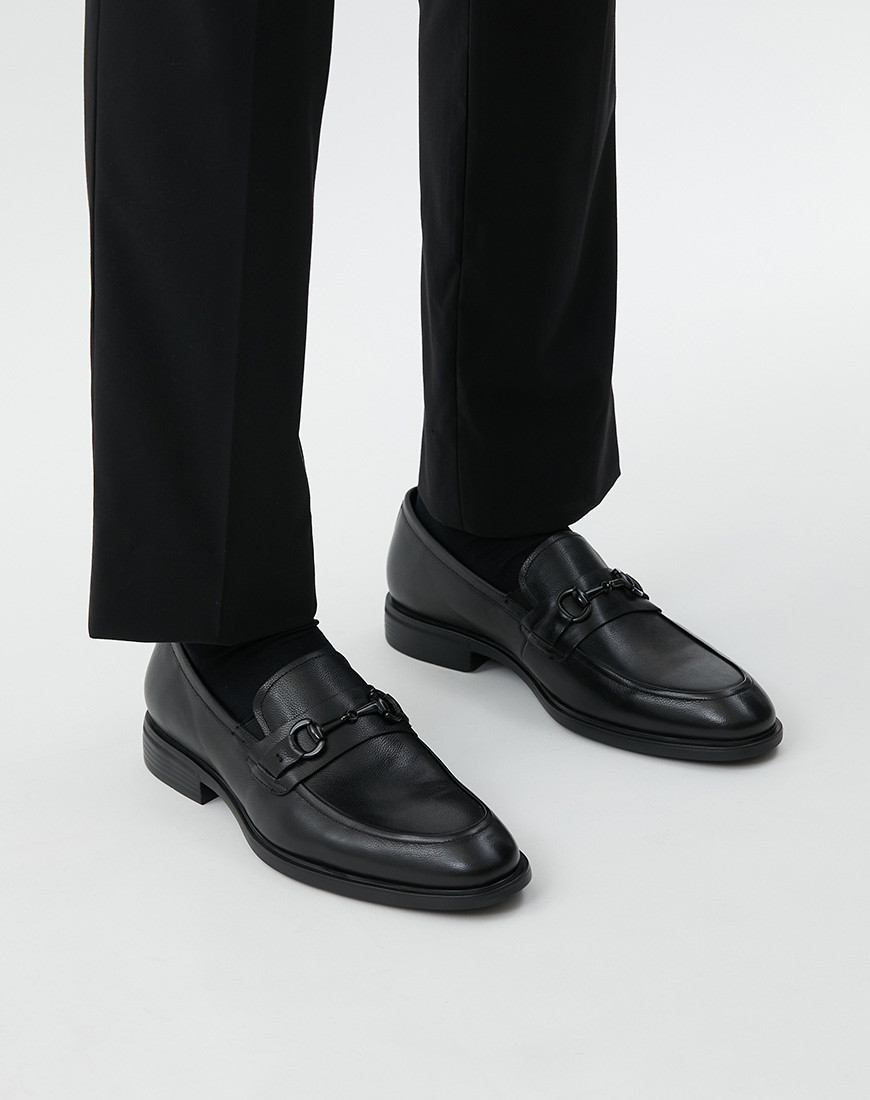 Formal style horsebit loafers made with genuine black leather uppers. The insole is fully cushioned with soft foam for enhanced comfort. Designed with a sleek formal appearance, the outsole is crafted from durable, lightweight molded TPR. The TPR outsole also offers excellent non-slip performance.