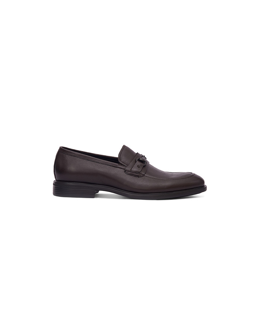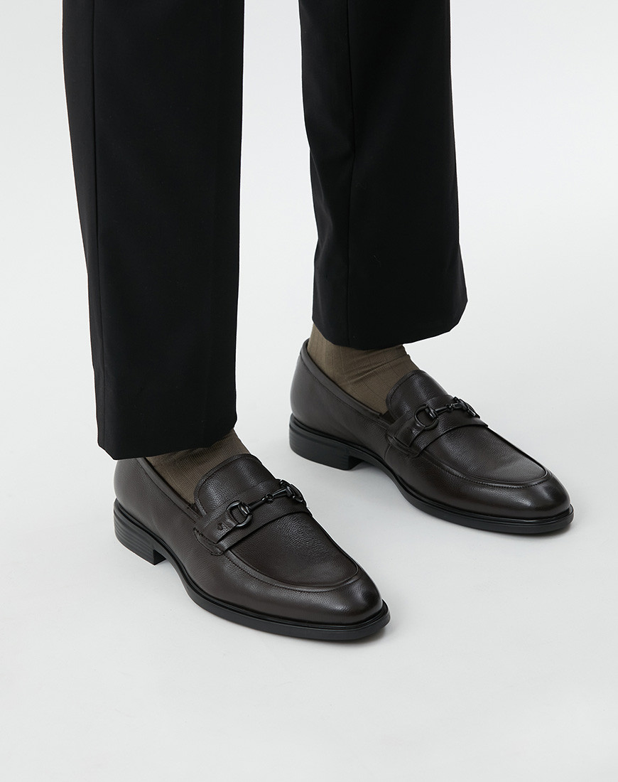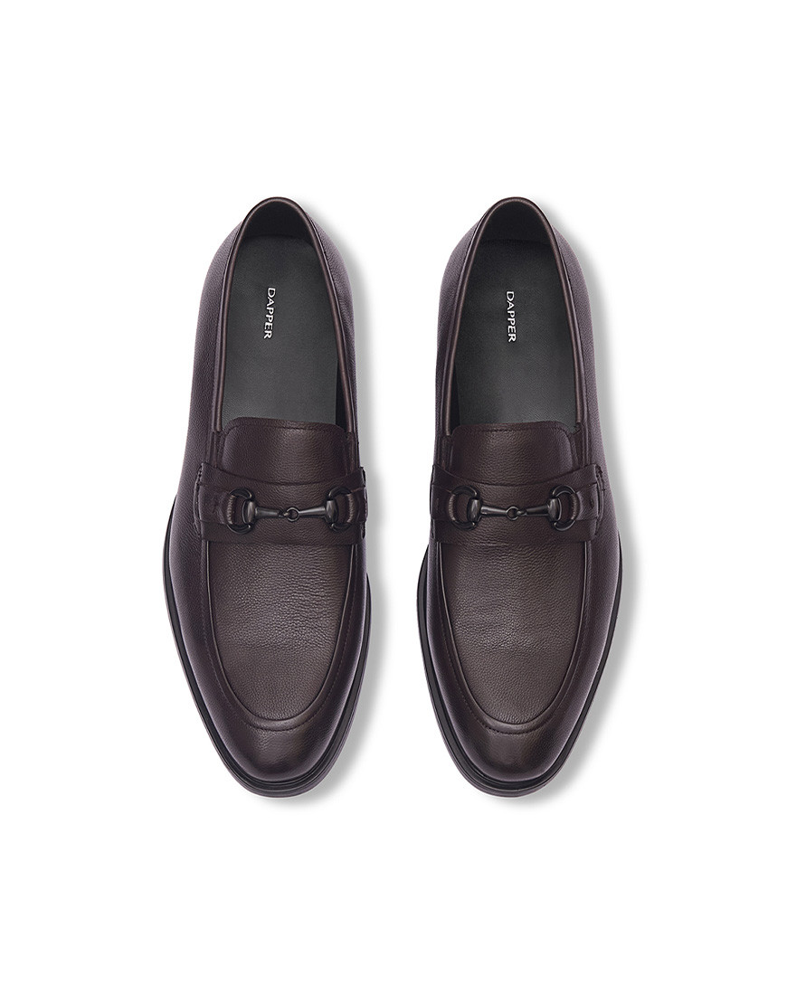 Formal style horsebit loafers made with genuine brown leather uppers. The insole is fully cushioned with soft foam for enhanced comfort. Designed with a sleek formal appearance, the outsole is crafted from durable, lightweight molded TPR. The TPR outsole also offers excellent non-slip performance.