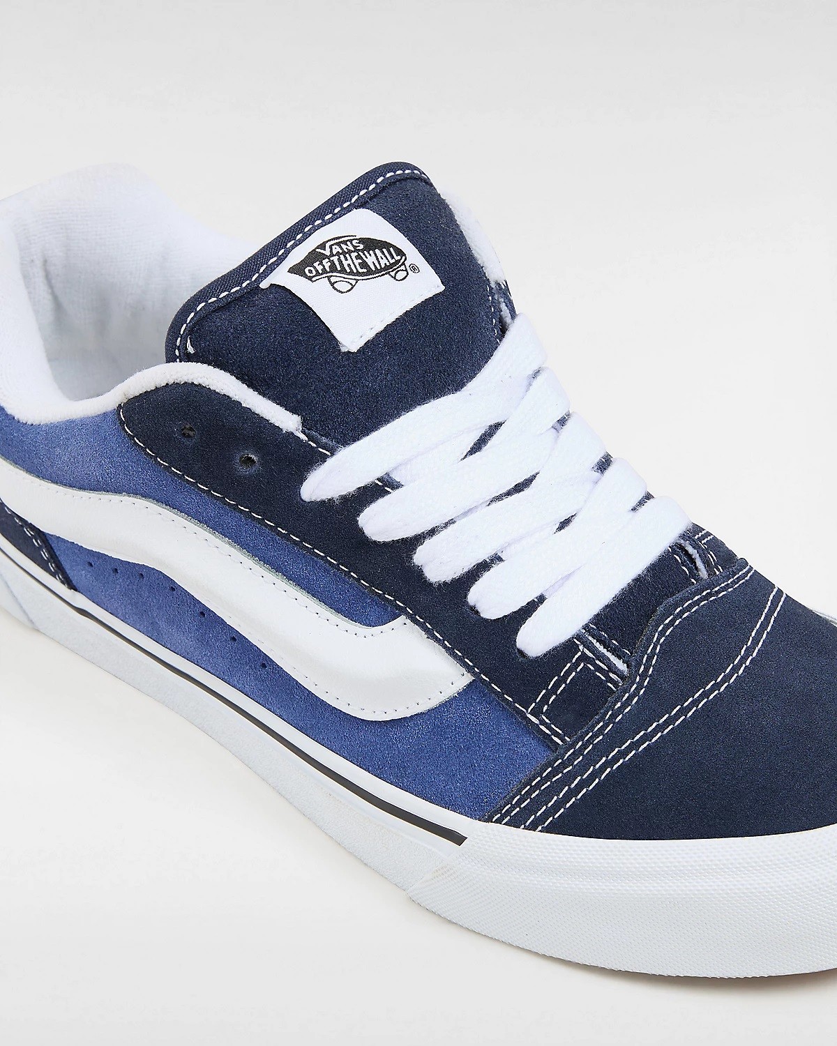 The Knu Skool is a reissued model from the 90s, when skate shoes were extra puffy. Made with sturdy suede uppers, this low top silhouette features a big puffy tongue and ankle collar, giving it an exaggerated look that plays off of the original Old Skool.