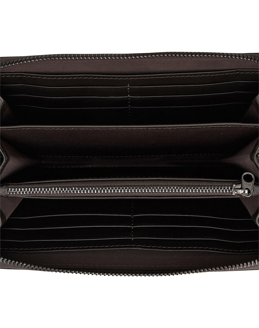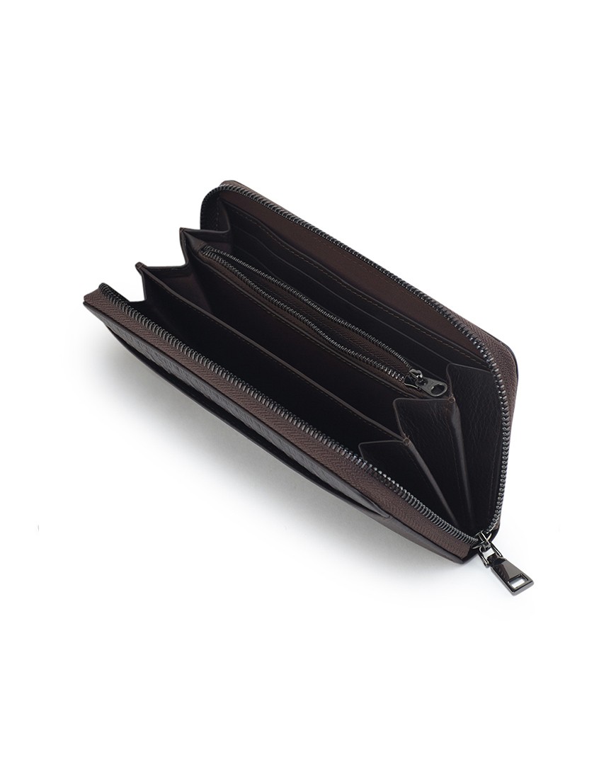 Accordion Long Wallet in DAPPER Monogram embossed leather & Brown leather Zip-around closure outside open pocket 2 full length bill compartment 12 credit card pocket/zip coin.
