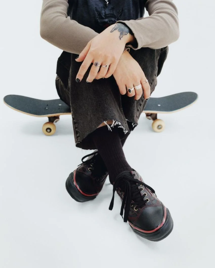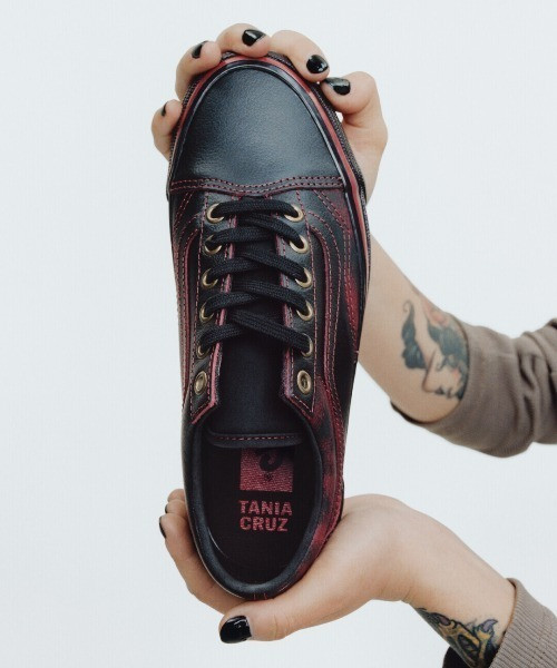 As an Argentinian living in Barcelona, Tania is thriving in one of the world’s richest skate communities. Drawing inspiration from her friends in skate and art communities across the globe, Tania designed a Premium Old Skool that her whole crew would want to wear. Constructed with a rich rub-away leather that subtly changes color as the top black layer is worn off to reveal the red underneath, so each shoe will look even more unique over time.
