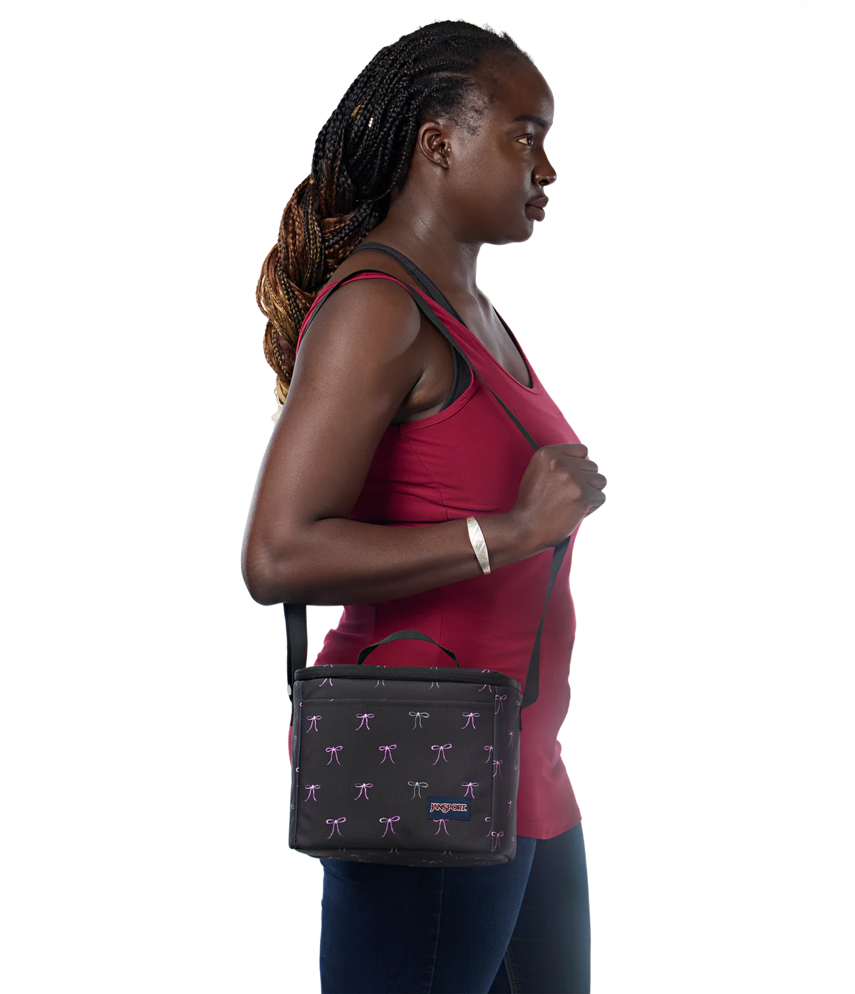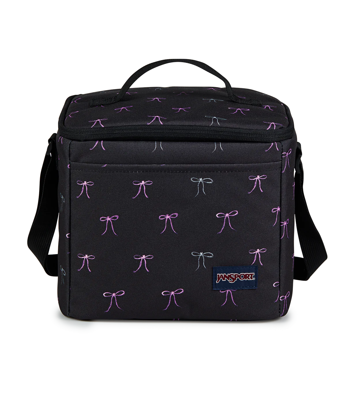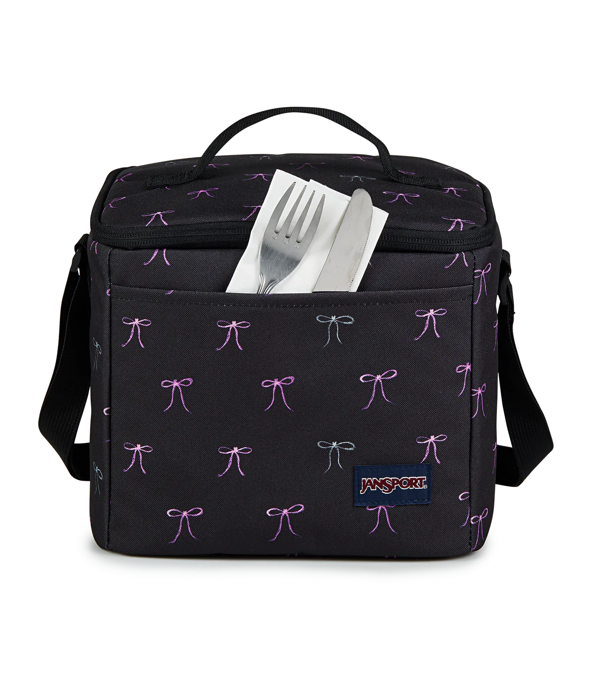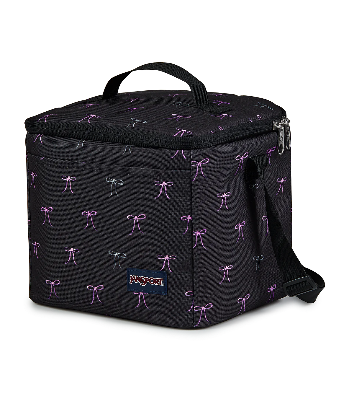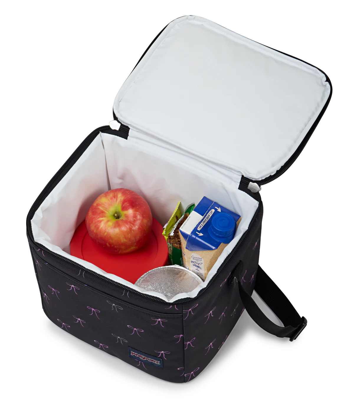 Super Snack eats brown bags for lunch. Keep foodie favorites in an insulated, BPA-free main compartment. Store items in the easy-access front drop pocket. An adjustable shoulder strap or haul handle let you eat and run in style.