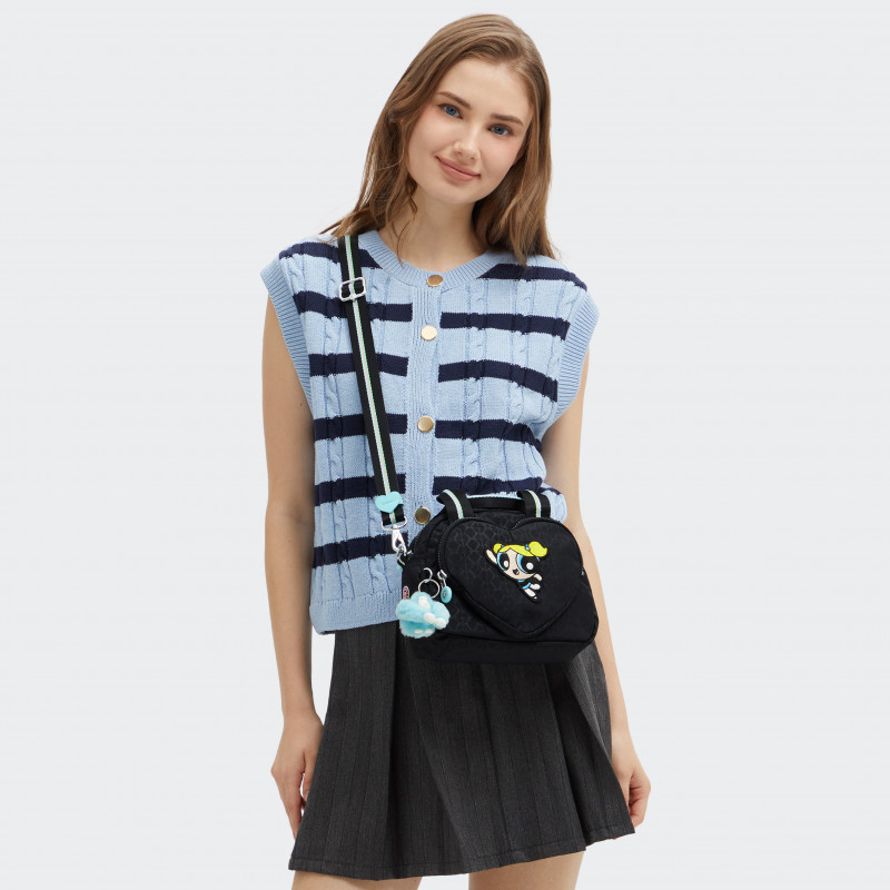 Get ready to embrace your limitless potential with this super-powered sister trio! This collection is sugar, spice, and everything nice! Find Kipling’s embossed signature “K” print, zinc hardware, silicone logos, and tonal monkey keychain on this shoulder bag featuring Bubbles.