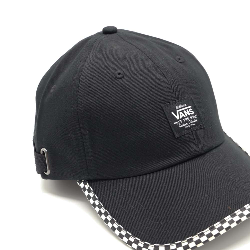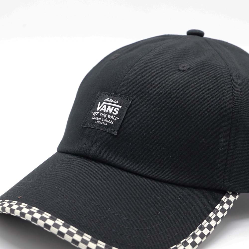 The CHECKER BINDING CAP is made entirely of cotton for good absorbency. The 6-panels structure with checkerboard embroidery around the rim enhances the hat's dynamism and Vans character.
